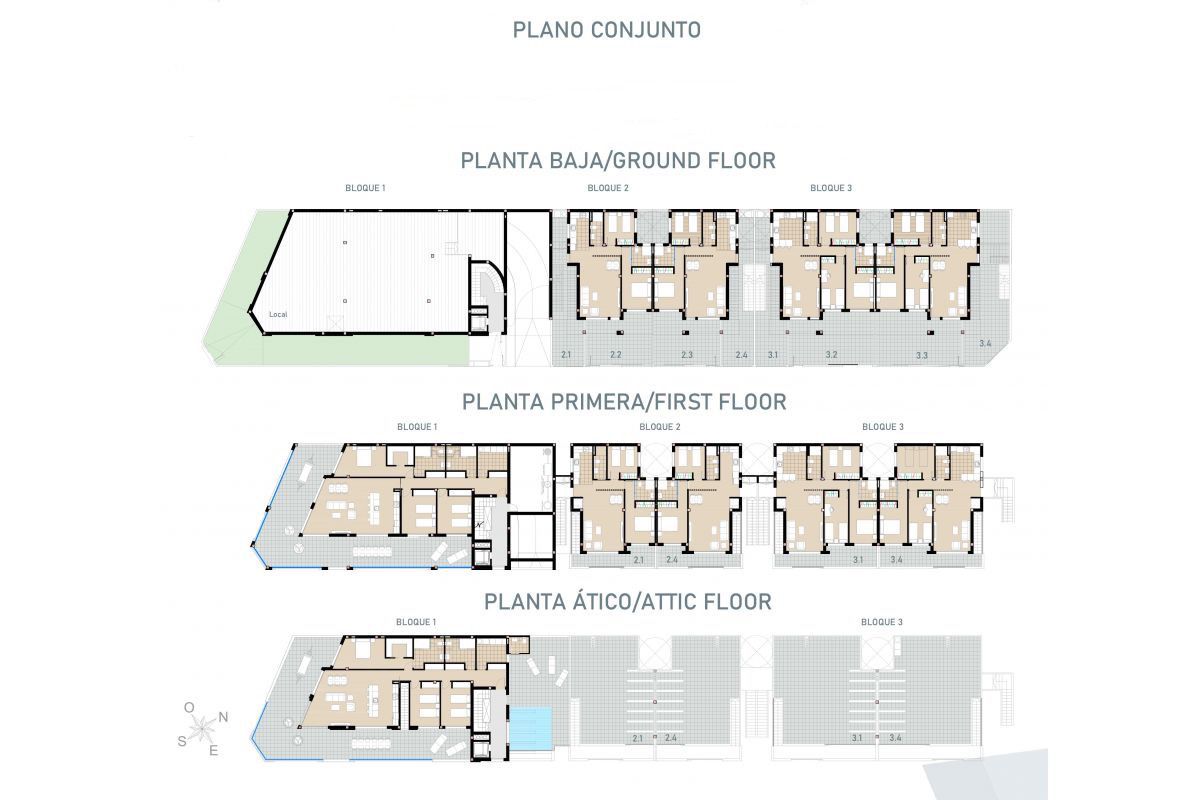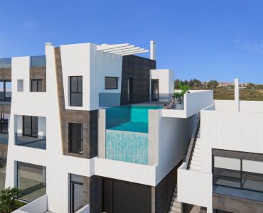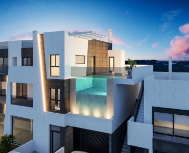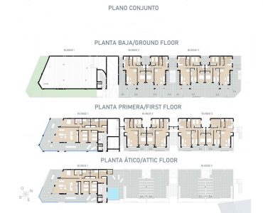 El complejo residencial, de estilo moderno, está formado por 8 viviendas con entrada independiente, de 2 y 3 dormitorios, con amplia zona de jardín o solárium. Un edifico con local comercial en planta baja y 2 apartamentos de 3dormitorios con amplia zona de terraza y solárium. También dispone de una impresionante piscina en la azotea y plazas de garaje en el sótano.