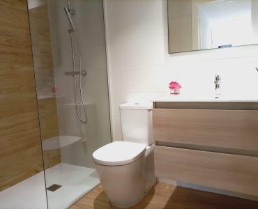 Suelos de gres porcelánico, preinstalación de aire acondicionado, ventanas de aluminio termolacado con doble acristalamiento tipo climalit con rotura de puente térmico.