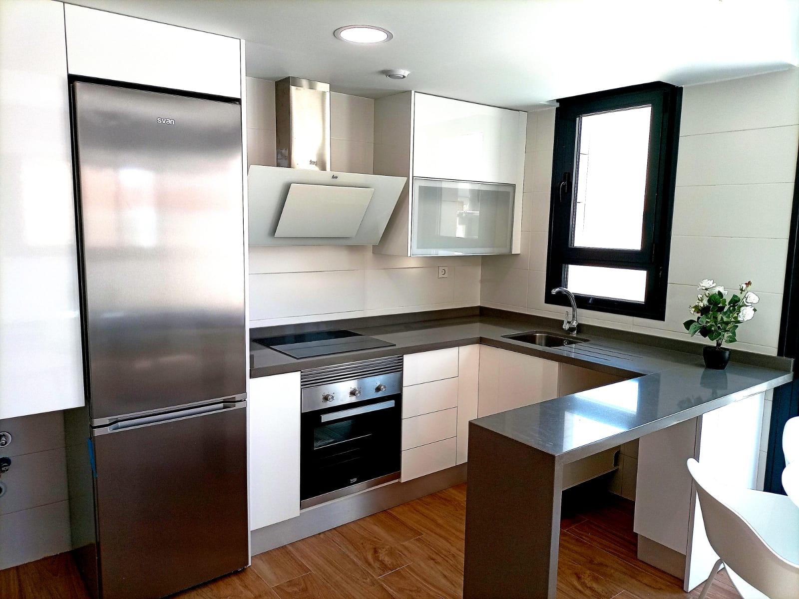 La cocina está totalmente equipada con placa de inducción, horno, campana extractora y fregadero,