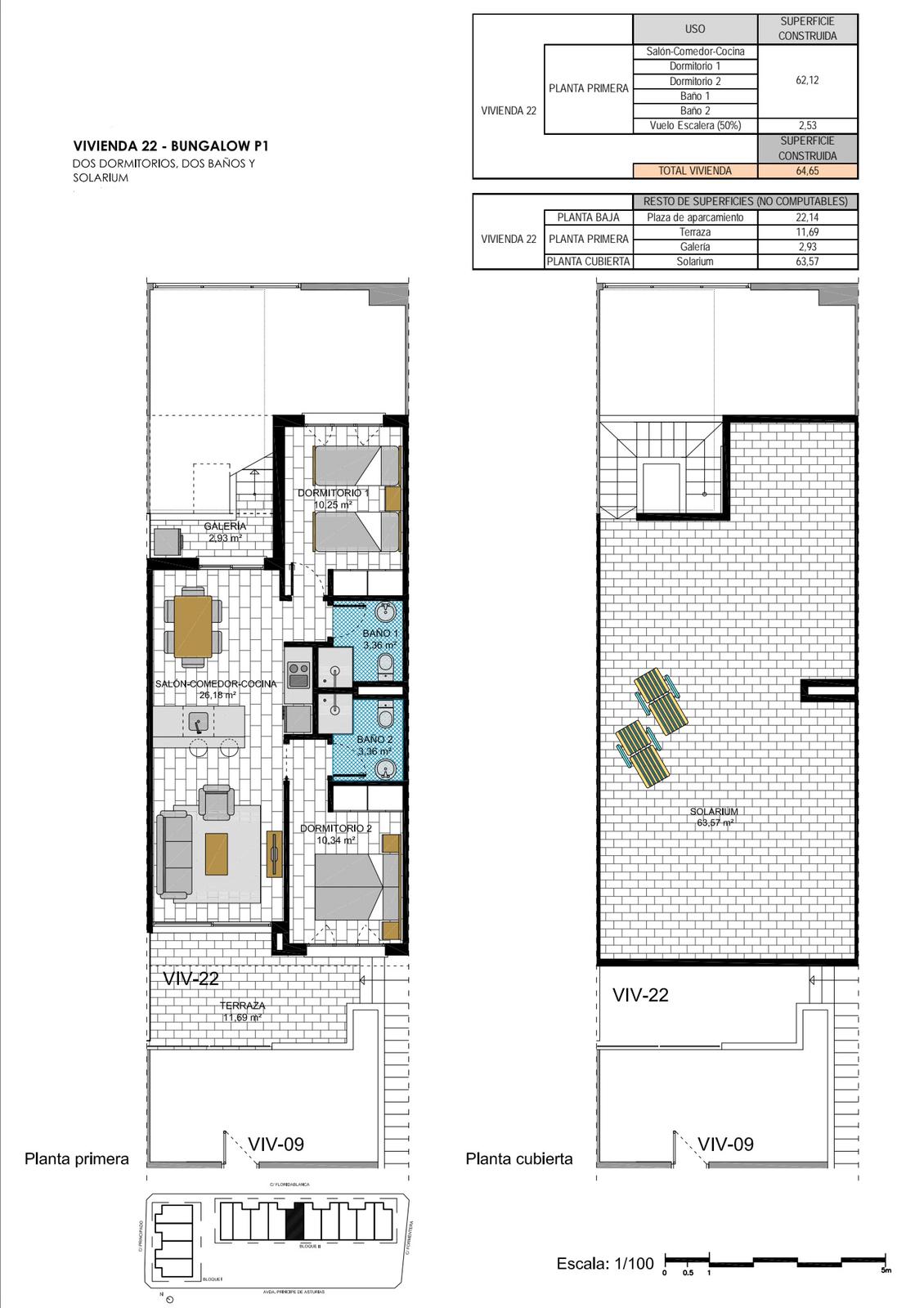Este residencial consta de 27 viviendas, concretamente 26 bungalows de 2 dormitorios y 2 baños y 1 dúplex de 3 dormitorios y 2 baños, con orientación Sur- Oeste, con vistas a la zona comunitaria de piscina y a la Rambla, lo que hace de este residencial un extraordinario lugar para deleitarse con su ubicación.