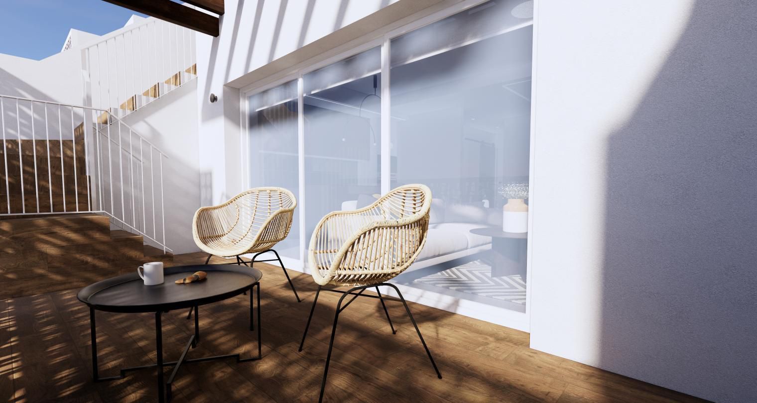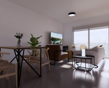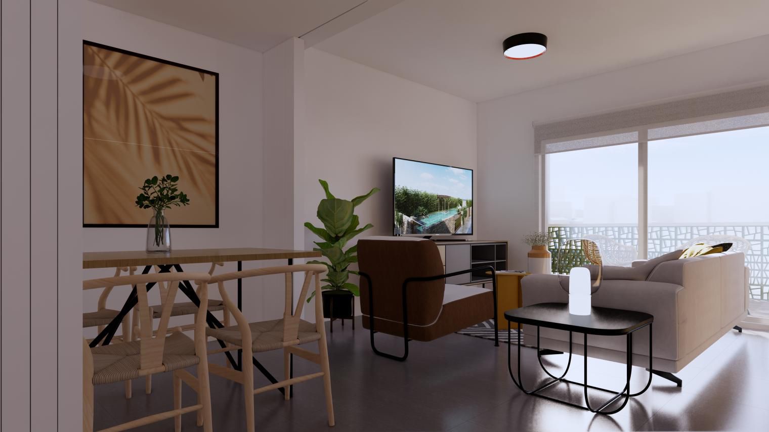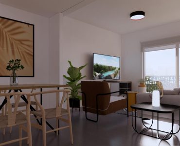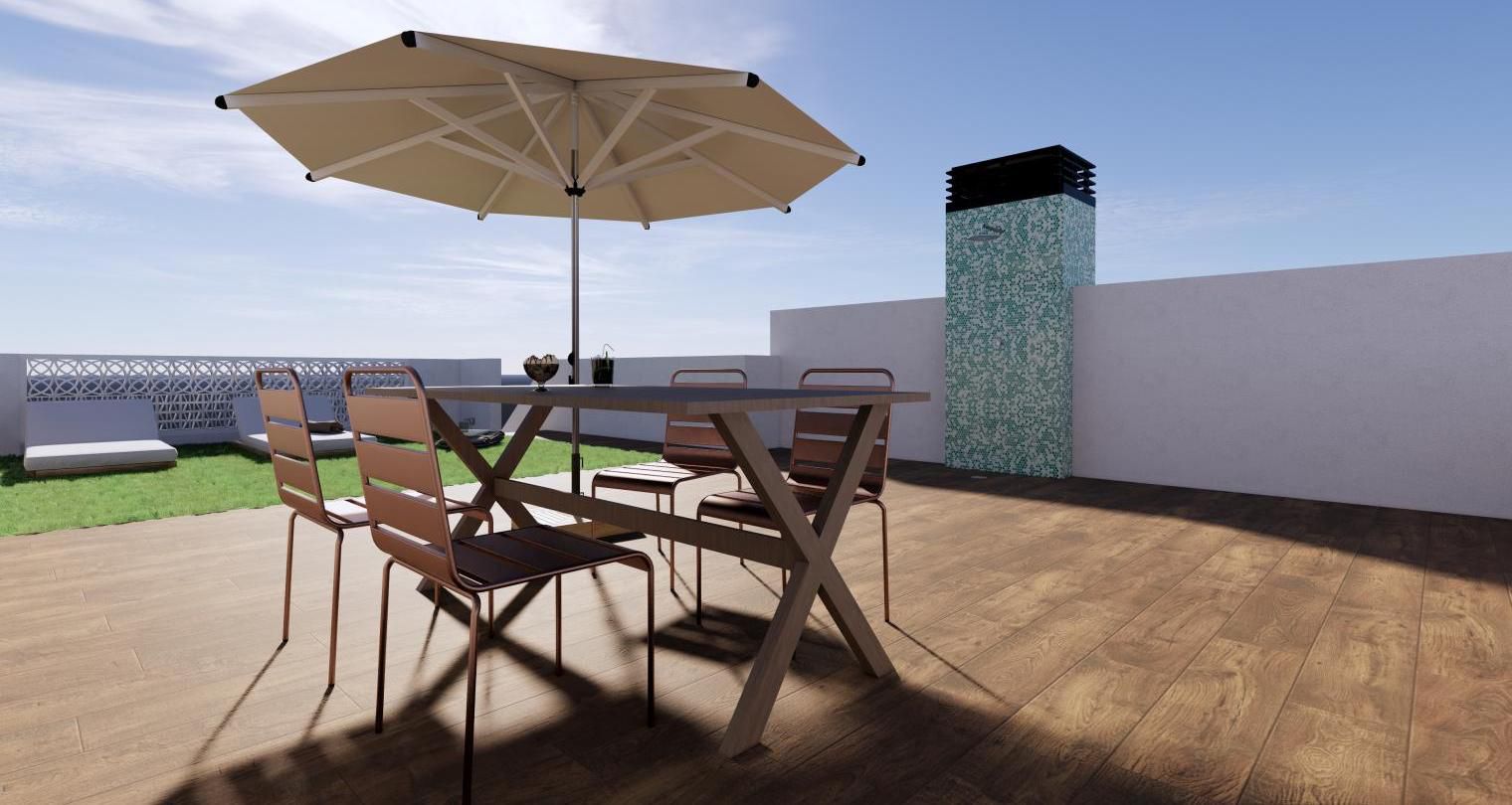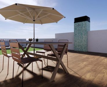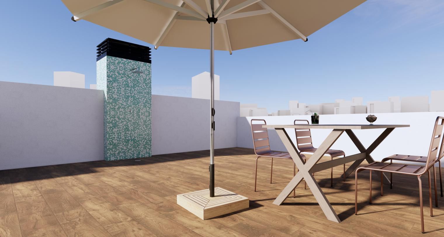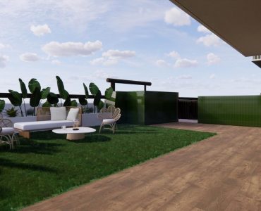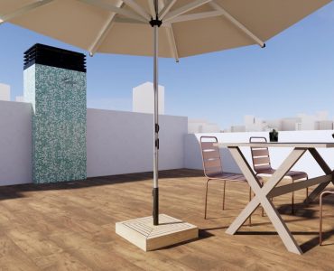 Es de diseño vanguardista y consta de dos dormitorios y dos baños. Así como parking y piscina comunitaria. Tiene 75 m2 construidos y una terraza de 12m2.