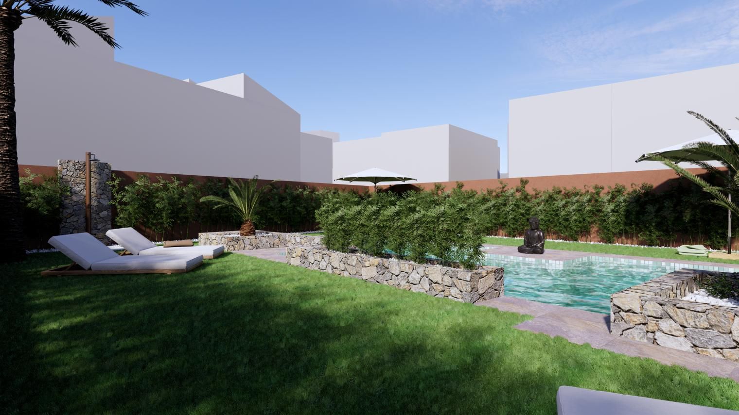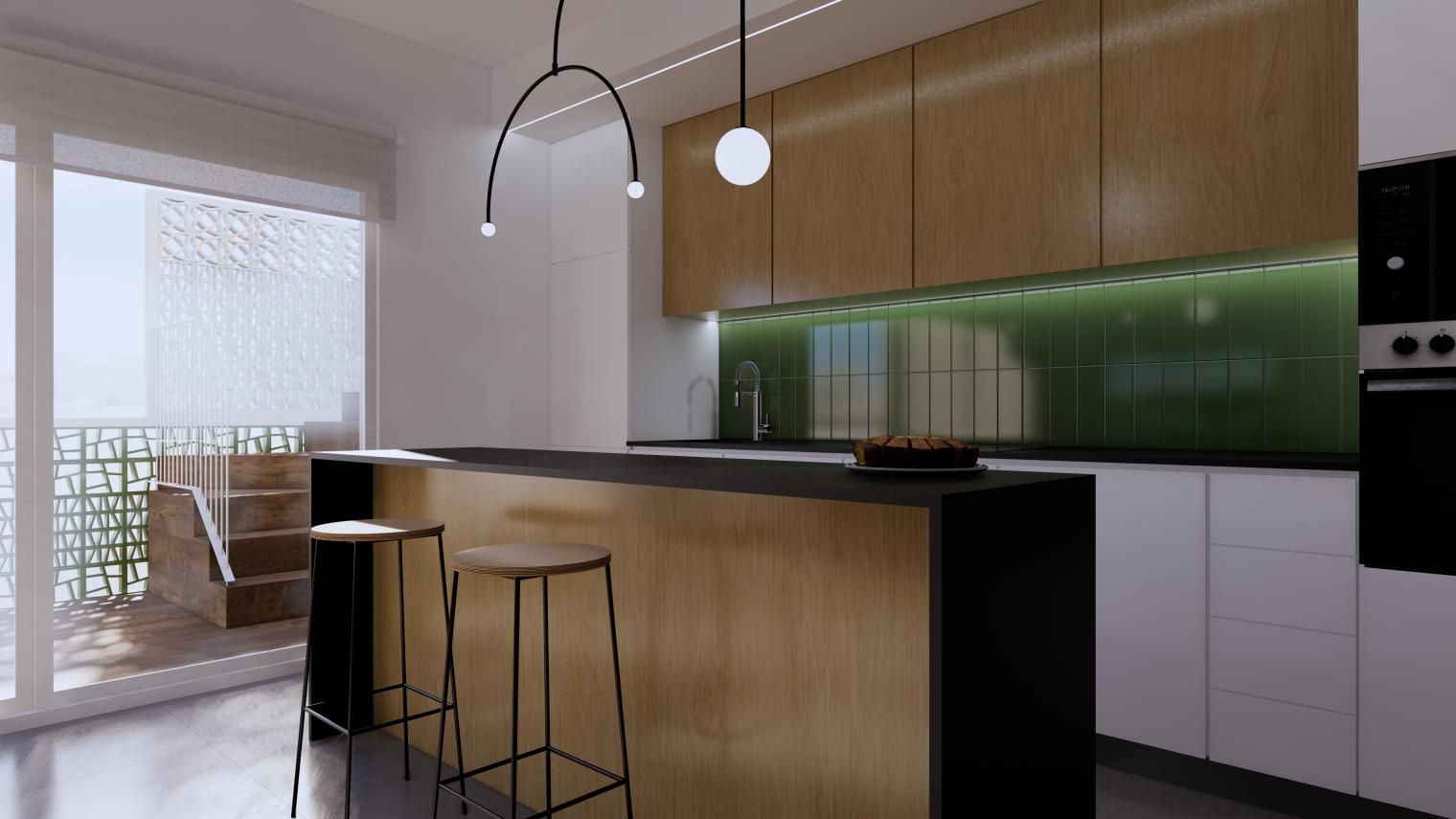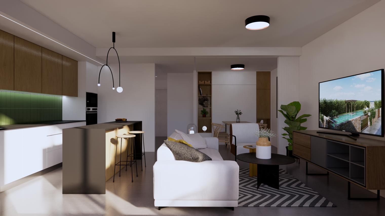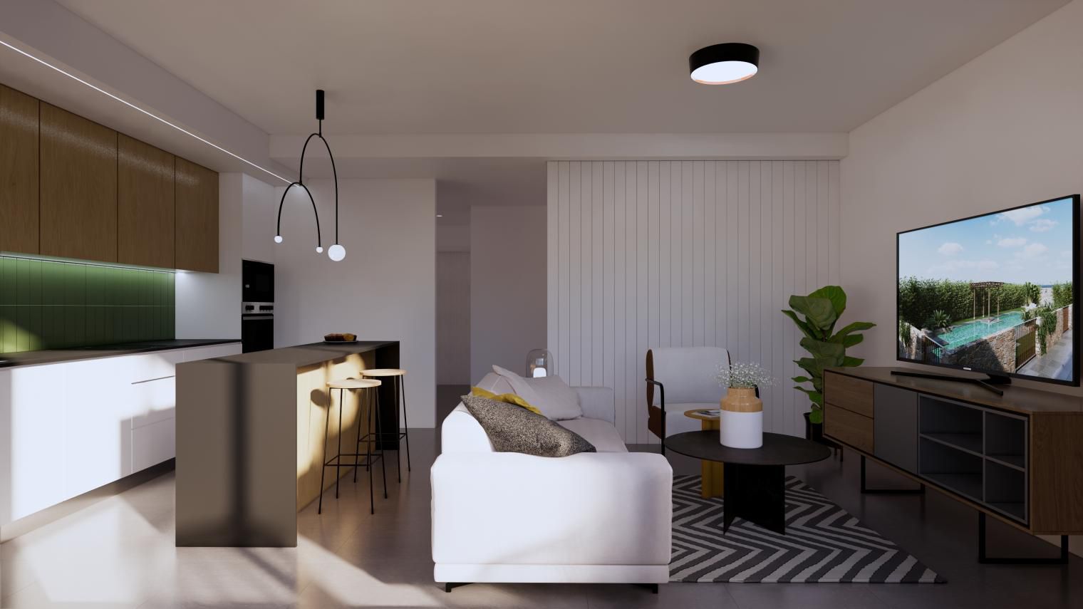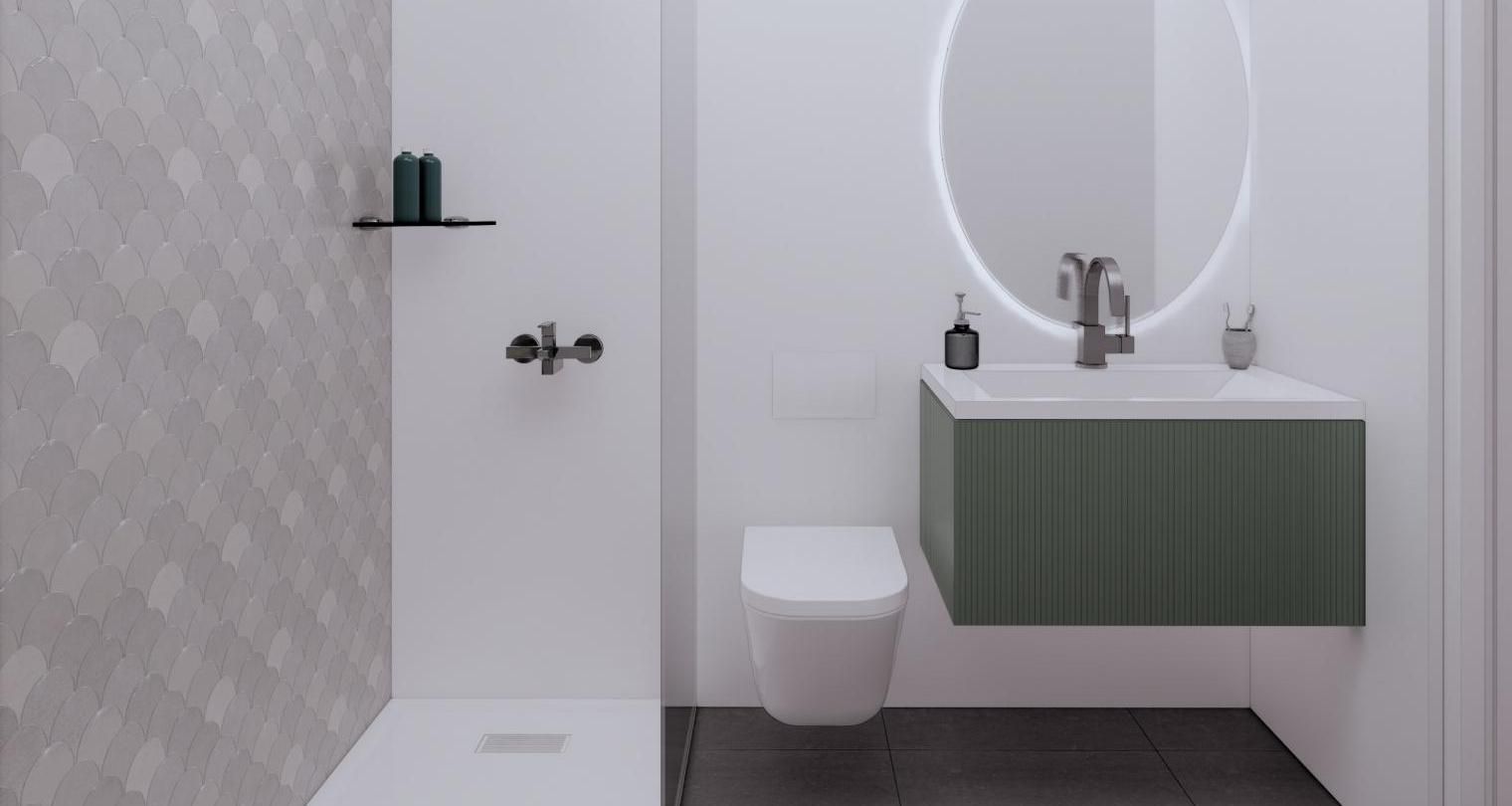 Es de diseño vanguardista y consta de dos dormitorios y dos baños. Así como parking y piscina comunitaria. Tiene 75 m2 construidos y una terraza de 12m2.