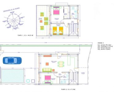La villa se divide en 2 plantas, en primera planta encontrará un amplio salón-comedor, cocina abierta, baño y una habitación. En la segunda planta encontrará 2 habitaciones, 1 baño completo y una terraza de 18 m2. La villa también cuenta con piscina privada de 3×5 mts y entrada privada para vehículo.