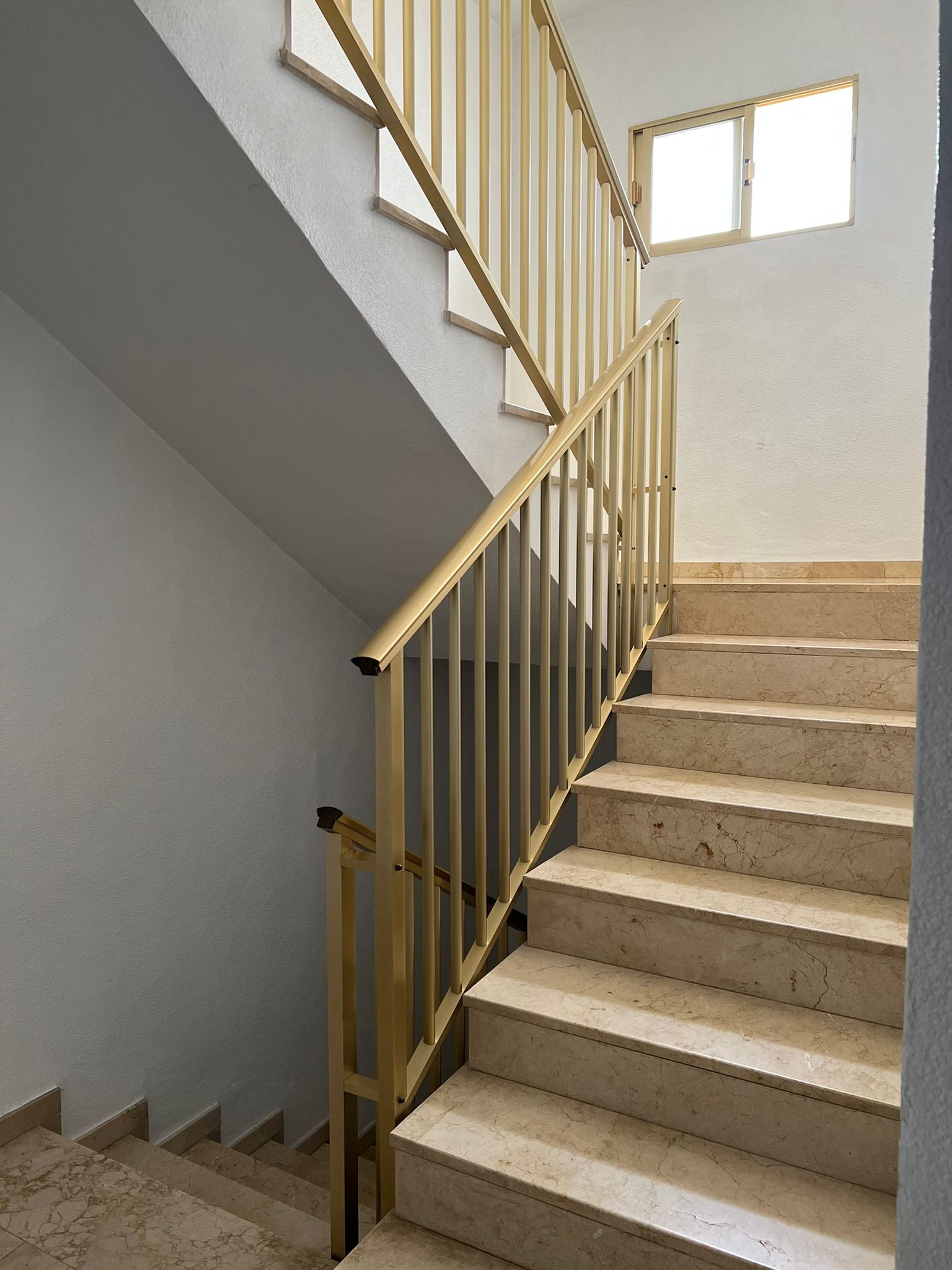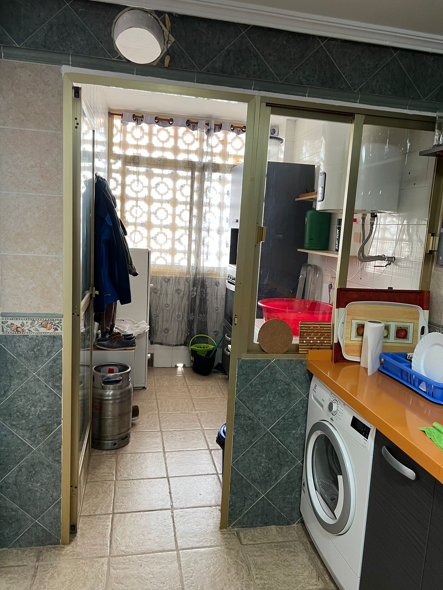 It is on the second floor and is distributed in different rooms: a large living room, separate kitchen with laundry area, three bedrooms, two bathrooms, balcony and storage room. It has 90 m2. The building has an elevator.