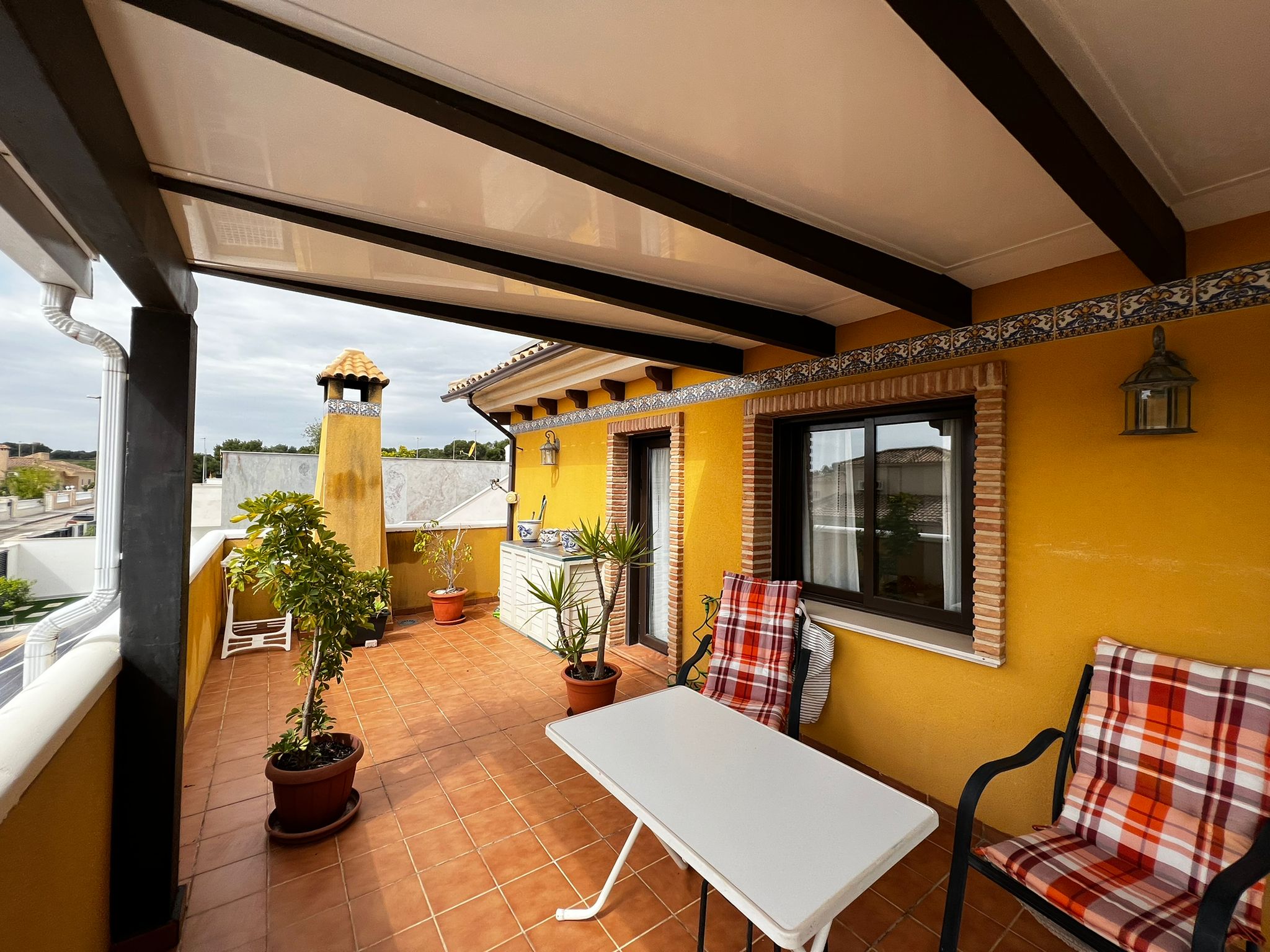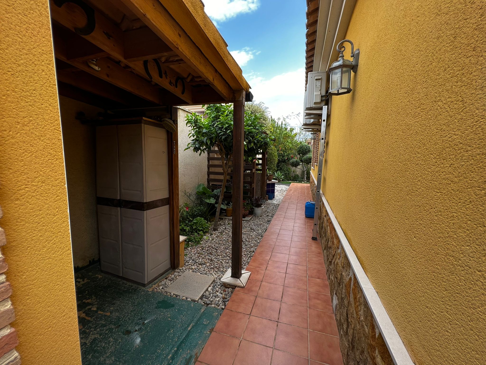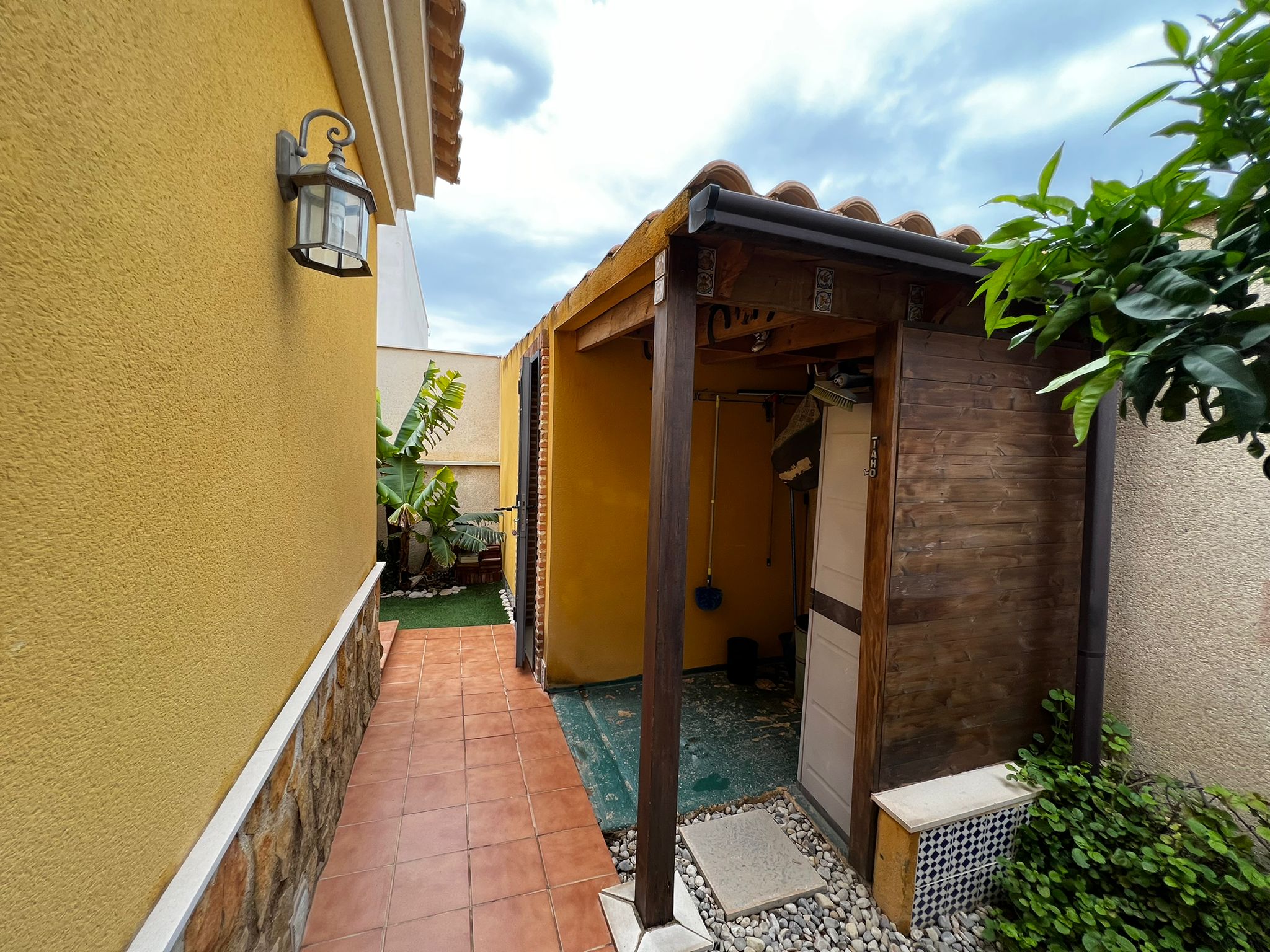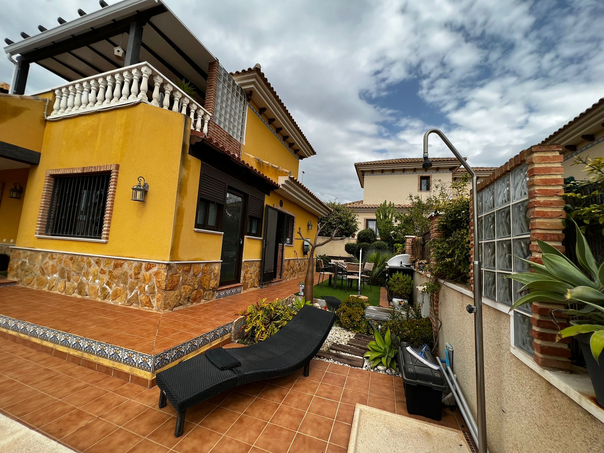Outside, we have a beautiful well-equipped garden with different spaces, such as the covered terrace in front of the house, the 7×3 pool, 1 small barbecue area near the kitchen exit, a laundry room, a storage room.