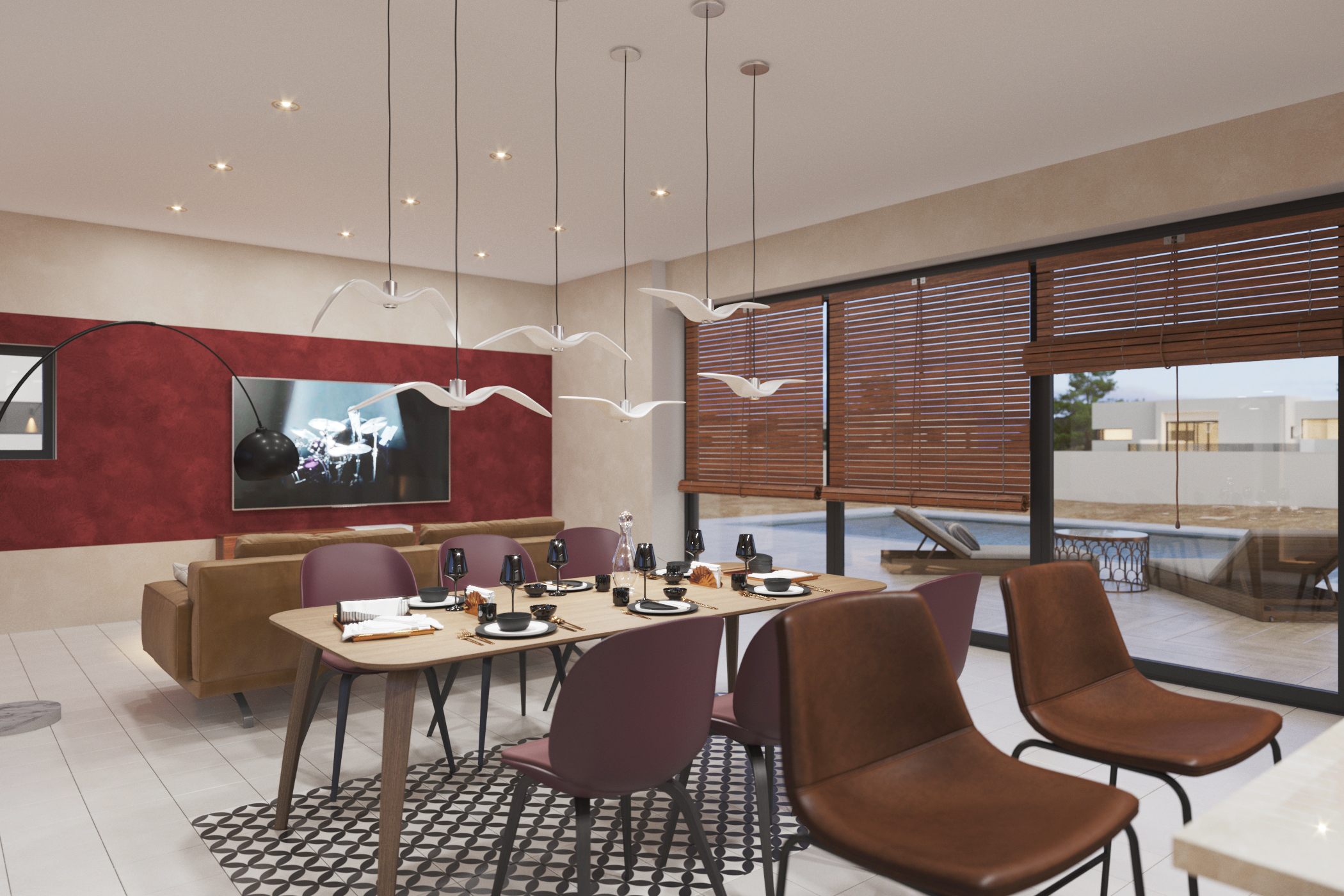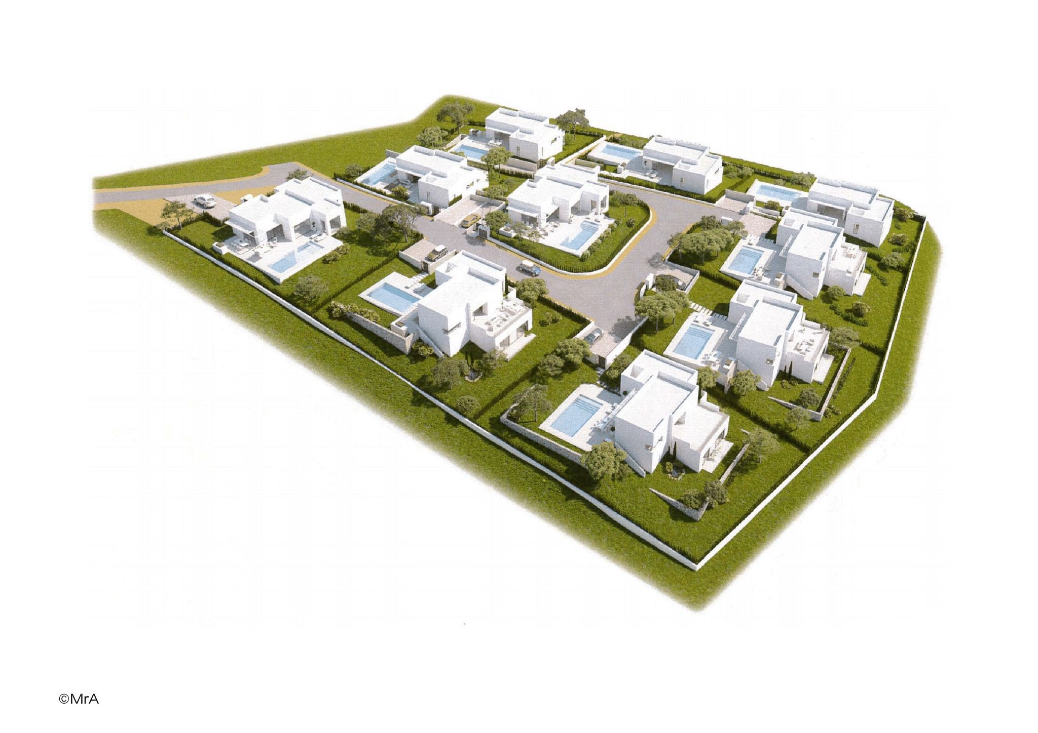 This luxurious and Modern Project consists of 10 spacious and designer LUXURY villas. Plots from 700 to 960 square meters and between 165 and 169 square meters built. 3 bedrooms and 3 bathrooms, terrace plus solarium. Aluminum windows with double glazing with internal air chamber and thermal break motorized blinds with remote control. Armored main entrance door with multipoint security lock. Intercom video entry. Interior natura l wood doors lacquered with polished stainless-steel handle and magnetic latches. Lacquered wardrobes doors and lined interior. Top quality tiles in kitchen and bathrooms Top quality sanitary appliances & glass shower screens. Perimetral porcelain non-slip floor tiles. Individual swimming pool with concrete structure and finished with Caribbean ceramic tiles. LED lighting in pool. 2 individual parking spaces. Installation of plumbing and electricity according to regulations. Pre-installed air conditioning by conduits in the basement, ground floor and first floor. TV, telephone & internet connections in all rooms. Video intercom1 and installation of security system
