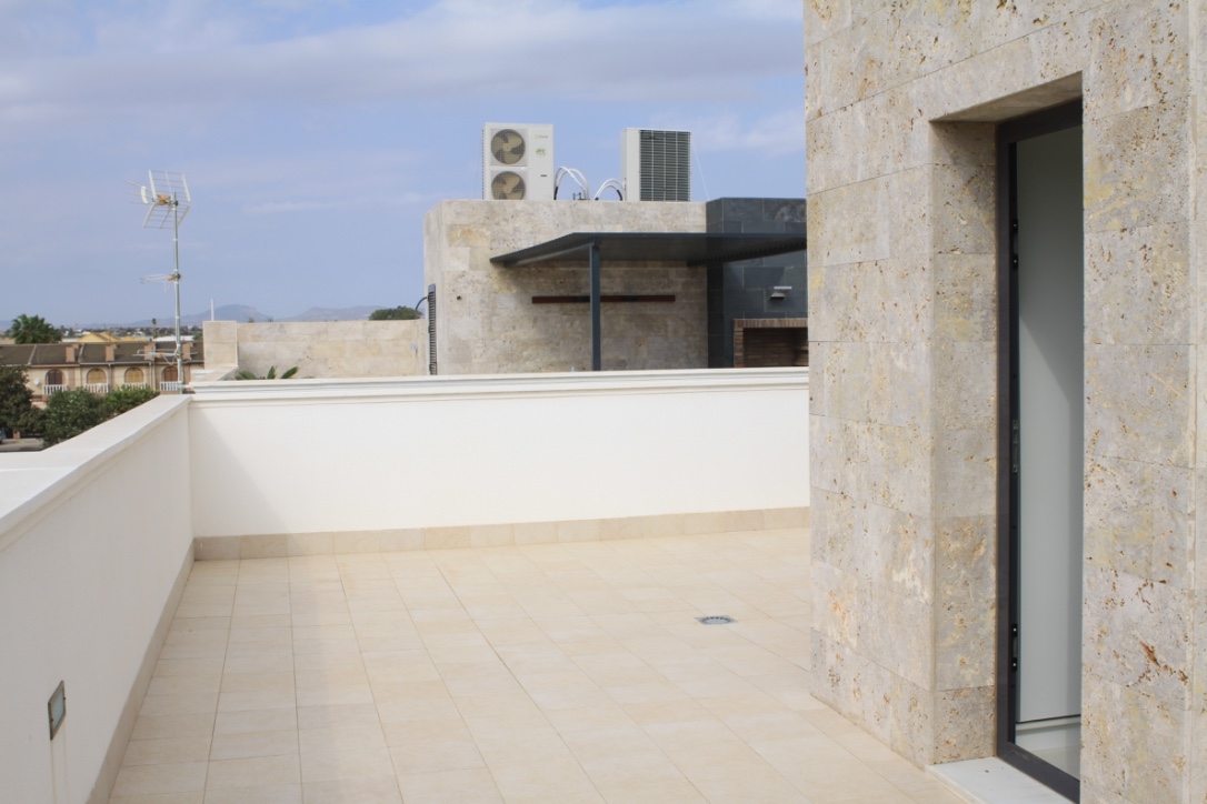 Modern villa located in the town of San Javier. House surface 200 m2 4 bedrooms, 3 bathrooms, separate kitchen, large living room with access to a large terrace, dressing room, on the first floor there is another large living room (44 m2), from which, if desired, you can make 2 bedrooms, solarium with barbecue, basement with parking. An area with developed infrastructure, close to the University, nursery school, college, a bus stop, health centers, restaurants and cafes. Also nearby is a salt lake with healing mud, which helps with skin diseases and problems with the musculoskeletal system. Distance to the beach 850 m. Alicante Airport 70 km.